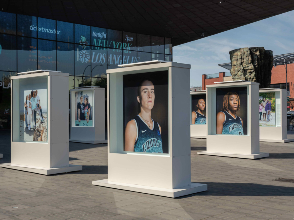 I tried my hand at combining these two sectors last year, when I helped develop a line of artist-designed tote bags and hats for the New York Mets. The experience made me eager to connect with Wu Tsai, who has helped Barclays evolve into the culture and entertainment platform it is today. This month, the stadium unveiled a new project by Frazier, the artist’s first public work. Frazier designed nine-foot-tall portraits of each player on the Liberty’s 2024 championship-winning roster—one side features a portrait of a player in uniform, and the reverse showcases the same player with their chosen family.